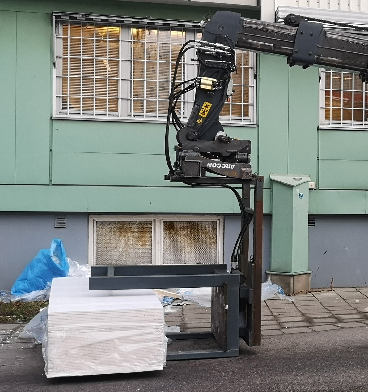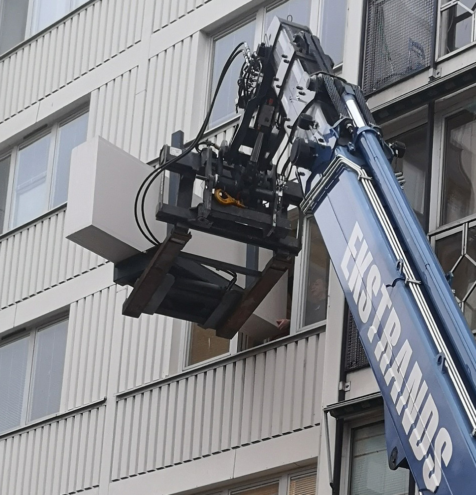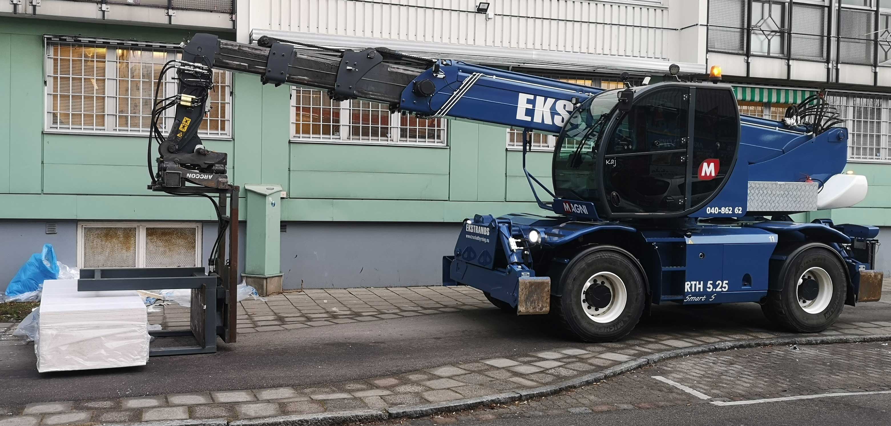 Gipslyft där du kan ta gipsbunten liggande och sen ställa upp den så det enkelt går att få in skivorna på högkant.